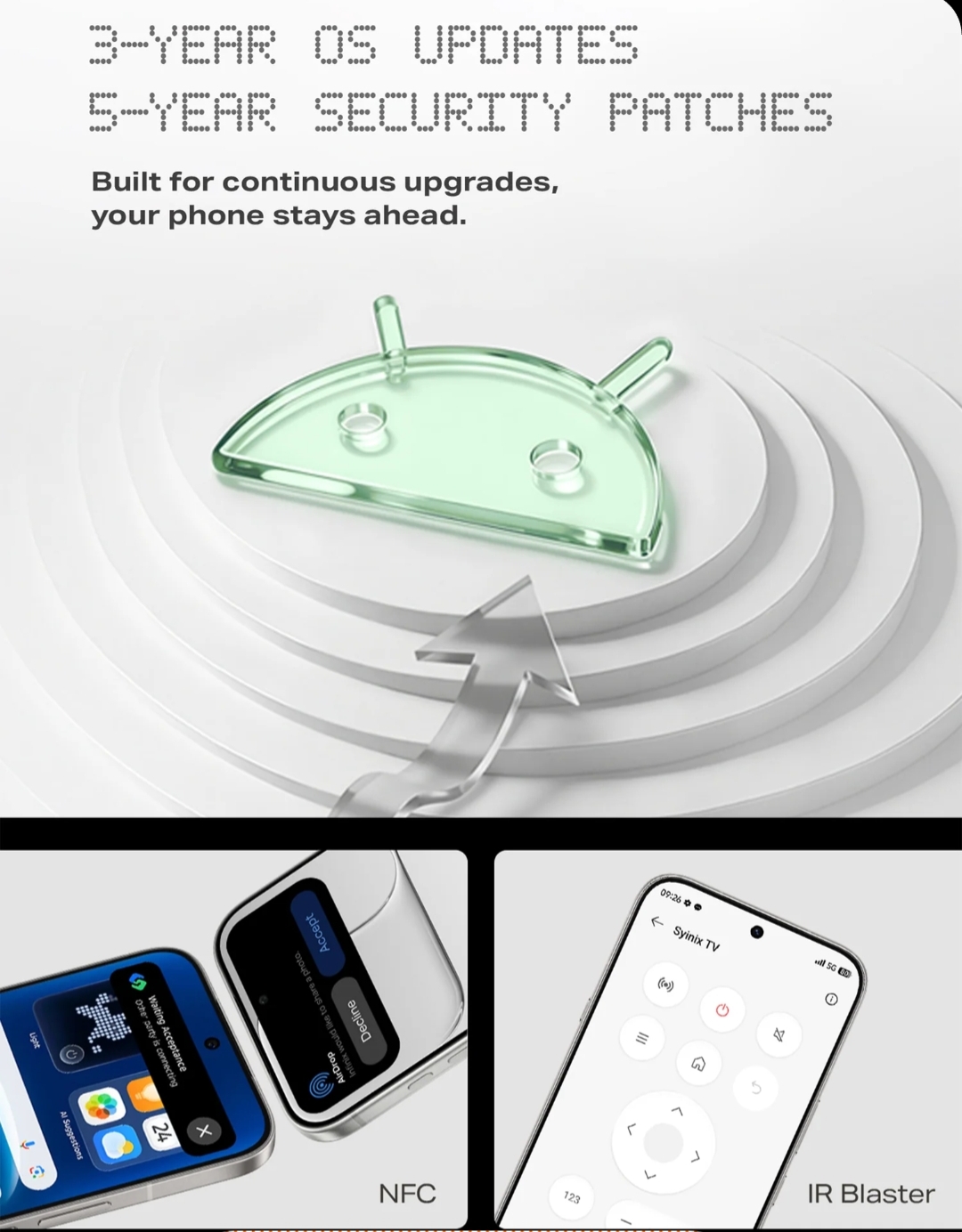 The company has promised 3-year OS updates and 5-year security patches. It comes with NFC support and an IR Blaster. It offers built-in 8GB RAM, while an additional 8GB can be added via MemFusion Technology.