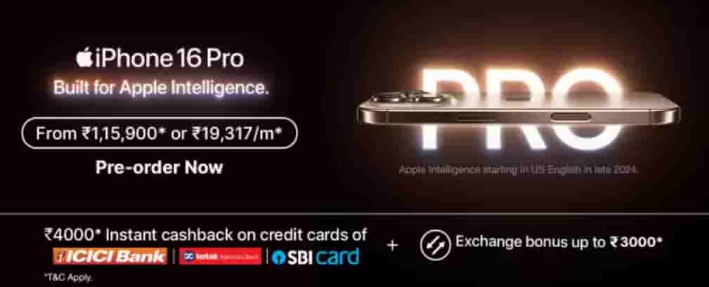 While purchasing iPhone 16 Pro or iPhone 16 Pro Max, buyers can avail of Rs.4000 instant cashback on credit cards of ICICI, Kotak, and SBI, a Rs.3,000 exchange bonus while a Rs.19,317 per month EMI option is also available. This means the iPhone 16 Pro models can be purchased at a starting price of Rs.1,15,900 while the base models (iPhone 16 and iPhone 16 Plus) can be purchased at a starting price of Rs.74,900. The official sale for all four models in India will start from 20th September onwards.