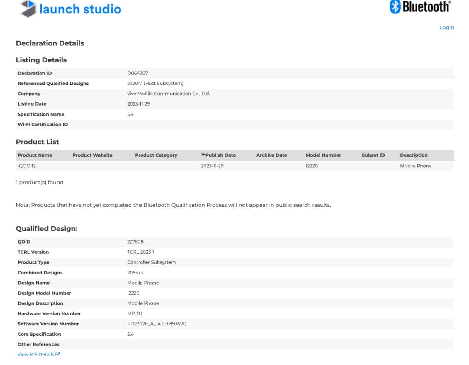 iQOO 12 5G Global Variant spotted on Bluetooth SIG certification website