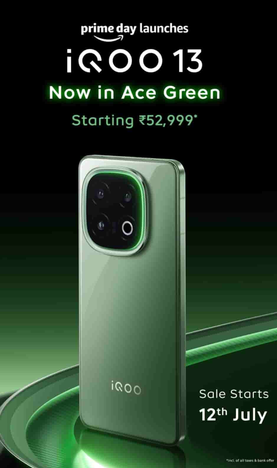 Last year, iQOO 13 made its official debut in the Indian market. At that time, the smartphone arrived with Legend Edition and Nardo Grey color option, and now today the company has launched a new Ace Green color edition of this smartphone in India.