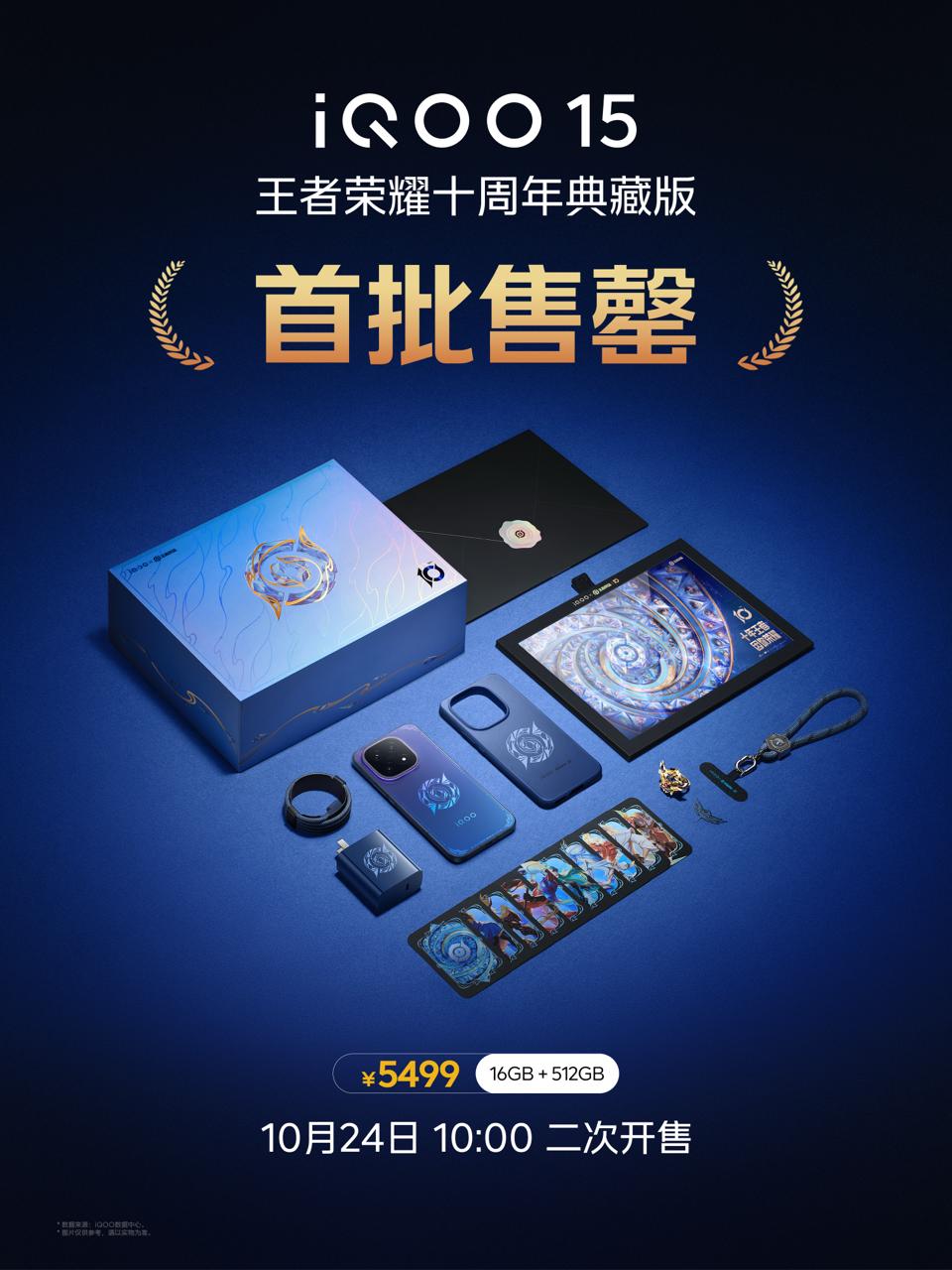 As earlier revealed, there is an iQOO x Honor of Kings 10th Anniversary Collector’s Edition model too available (with certain free goodies), and its 16GB/512GB storage variant is priced at CNY 5499. Only limited units will be available and the first batch has already sold out. Its second batch sale will be starting on the 24th of October 2025 (three days later) at 10:00 local time.
