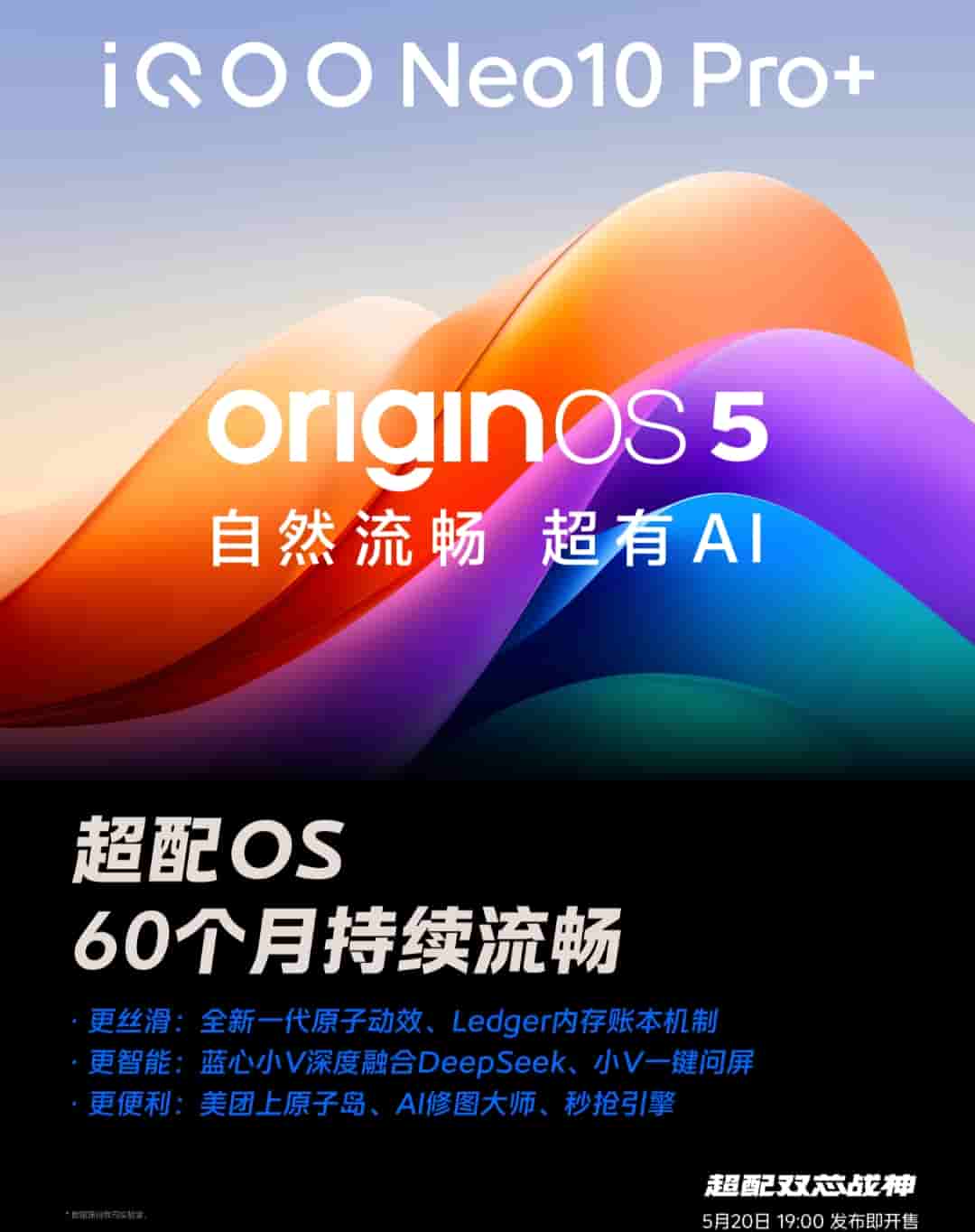 The smartphone arrives with 6 Super Gold Battle Cards. It will be equipped with OriginOS 5, which comes with features like AI PPT Assistant and a second grab engine, while Blue Heart V deeply integrates DeepSeek, dual engine drive, and more AI.