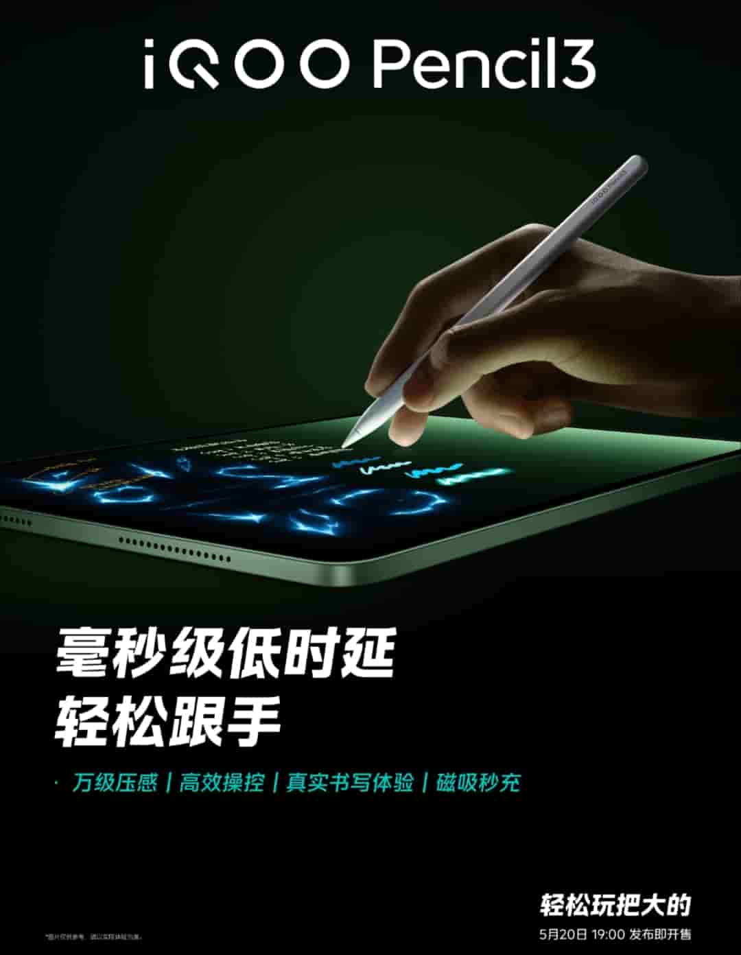 iQOO Pad 5 series is teased to arrive with support for the all-new iQOO Pencil 3. It has millisecond-level low latency, 10,000 level pressure sensitivity, offers efficient control, realistic writing experience, and magnetic charging support.