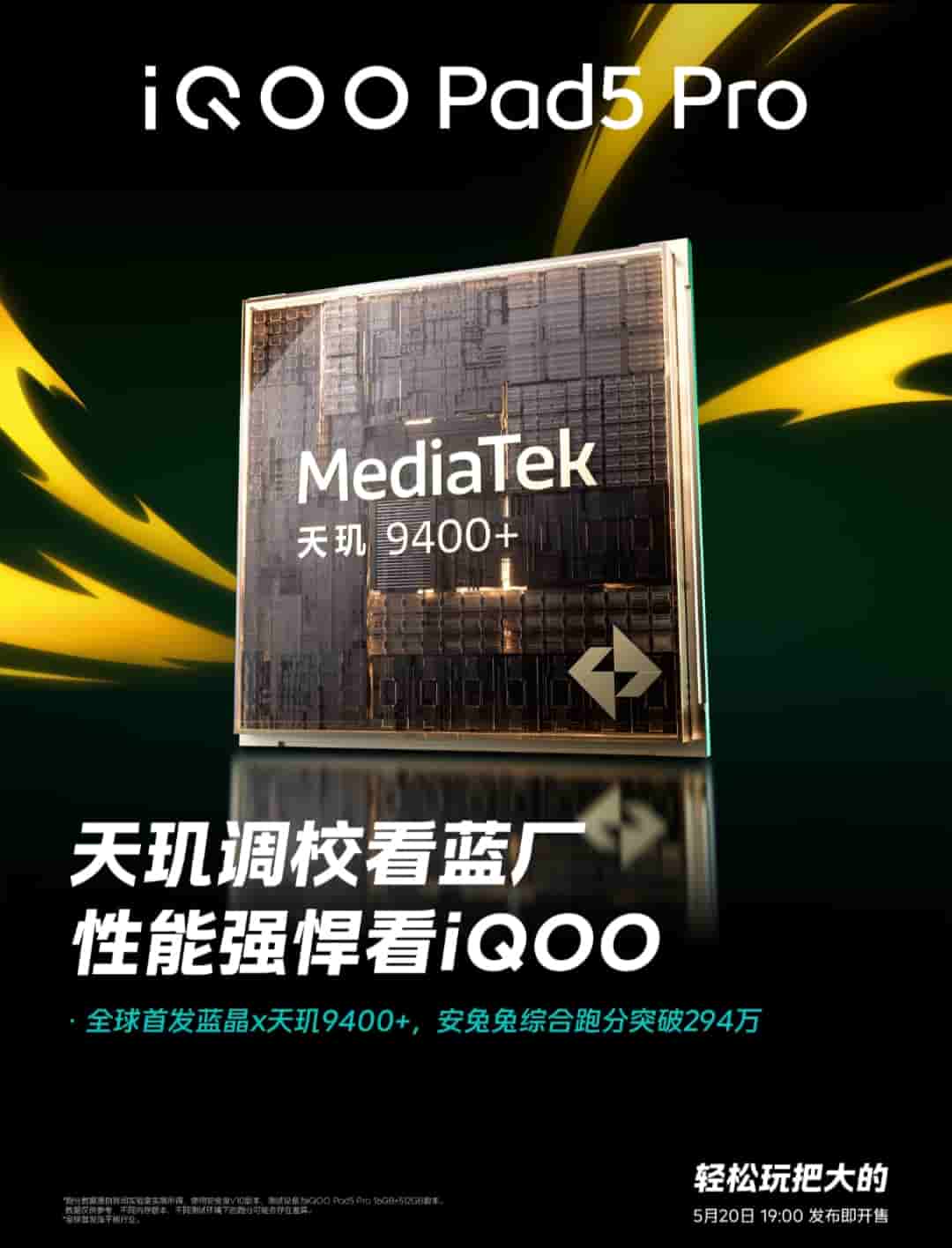 iQOO Pad 5 series becomes the first tablet recommended by both Naraka: Bladepoint and KPL. iQOO Pad 5 Pro is officially confirmed to arrive as the world’s first Blue Crystal x Dimensity 9400+ tablet, with a running score of over 2.94 million.