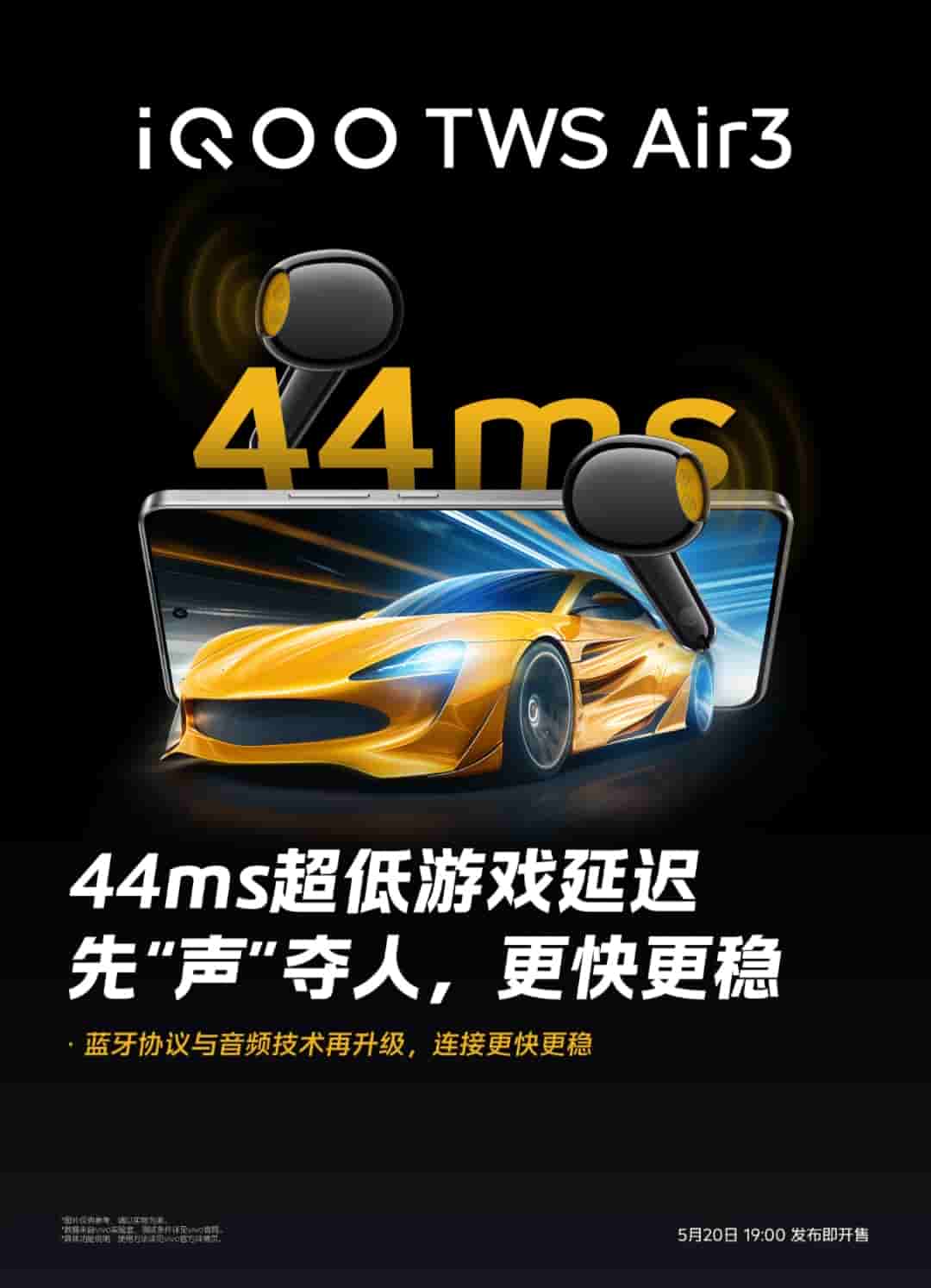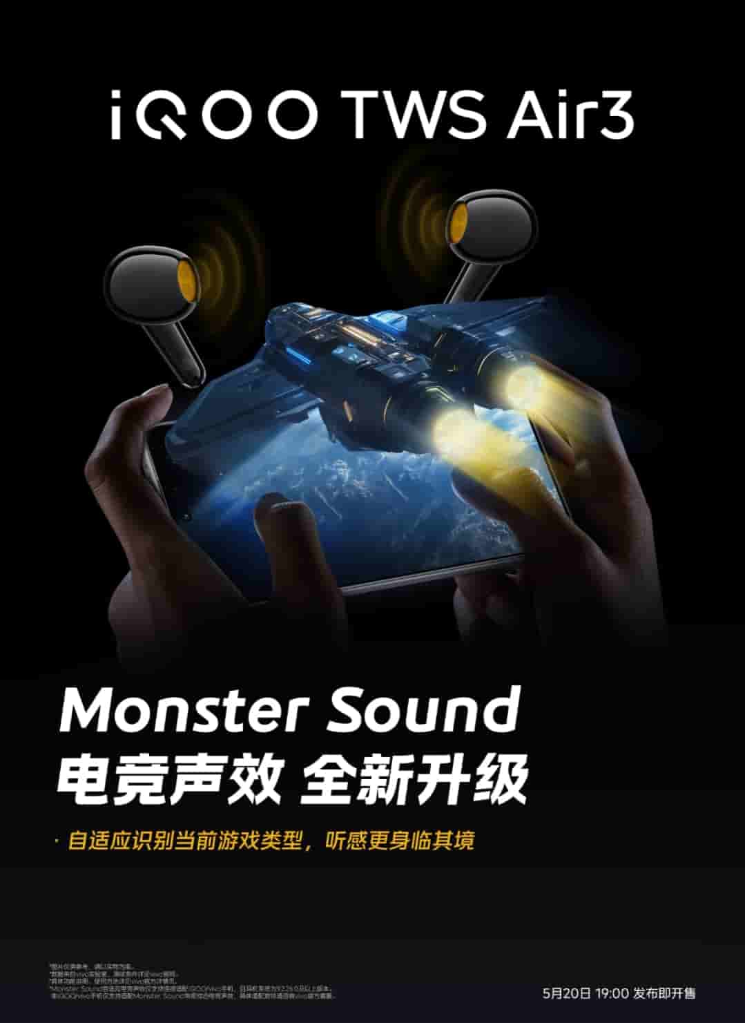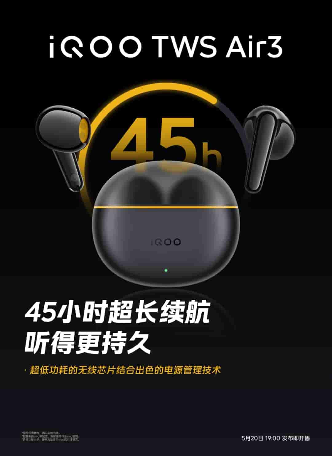 iQOO TWS Air 3 will offer 45 hours of ultra-long battery life, and 44ms ultra-low gaming latency, while with Monster Sound, the gaming sound effects are upgraded. Bluetooth protocol and audio technology are upgraded, faster and more stable connection is said to be offered.