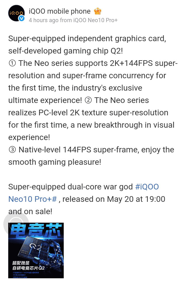 The Chinese consumer electronics maker and Vivo’s subsidiary company – iQOO has scheduled its Neo 10 Pro+ smartphone launch for next week in its home market and following the previous teaser updates, the brand has again teased a few of its gaming specs.