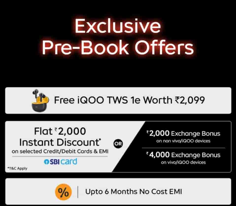 The pre-booking has already started via Amazon and the iQOO online store. Pre-booking offers include free iQOO TWS 1e earbuds worth Rs 2,099. The official sale starts from 3rd June at 12 PM for all the consumers, while for pre-booking users, the sale will start from 2nd June at 12 PM. Consumers can avail Rs 2,000 instant discount for SBI cards or Rs 2000 (non-Vivo/iQOO devices)/ Rs 4,000 (Vivo/iQOO devices) exchange bonus, while there is also no cost EMI facility for up to 6 months.