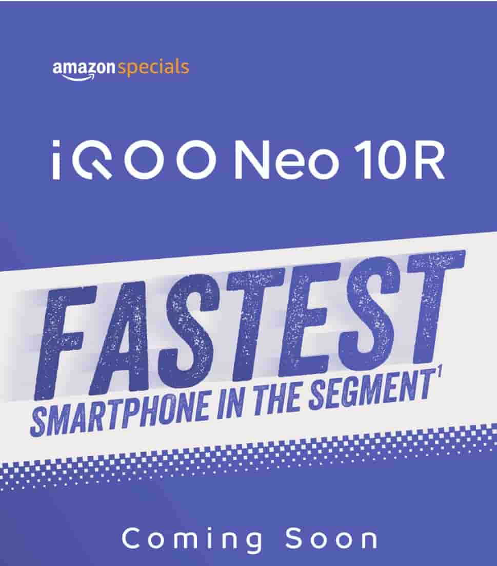 Yesterday iQOO India CEO teased the launch of a new iQOO device and it was assumed that the upcoming device could be an iQOO Neo 10R smartphone. The assumption seems to have proven right as the microsite of iQOO Neo 10R has been now made live on Amazon.