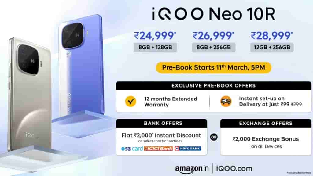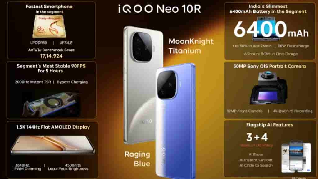 iQOO Neo 10R with Snapdragon 8s Gen 3 SoC and 6400 mAh Ultra-Thin battery launched in India