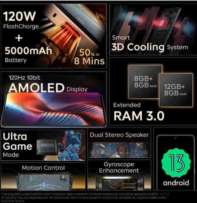 The smartphone houses a 5000mAh battery that supports 120W FlashCharge and as claimed by the company users can charge their device up to 50% in just 8 minutes. It packs up a triple rear camera setup that includes a flagship 50MP GNS OIS Ultra-sensing camera, 8MP Ultra-wide camera, and 2MP macro camera. Along with this, the device features 16MP front camera.