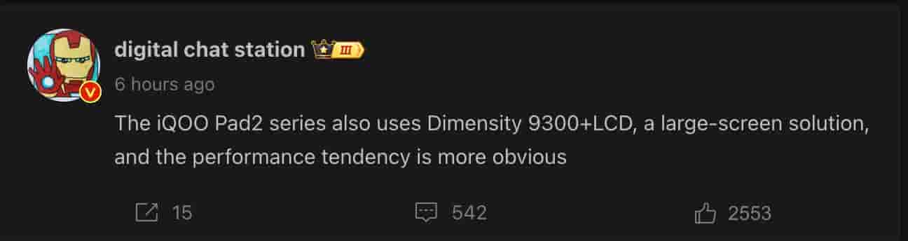 Vivo sub-brand iQOO just recently launched the Pad Air tablet and TWS 2 earbuds in its home market in China. The company can soon launch a new tablet series in the market named the iQOO Pad 2 series. Recently a reliable tipster named DCS tipped the model number of two devices of iQOO “PA2350” and “PA2473” saying it can be from Pad Series which means iQOO Pad 2 series. Now the same tipster has revealed the processor of the series that it can come with. As per the recent Weibo post by DCS the iQOO Pad 2 series tablets can run Dimensity 9300 chipset and can feature LCD display.