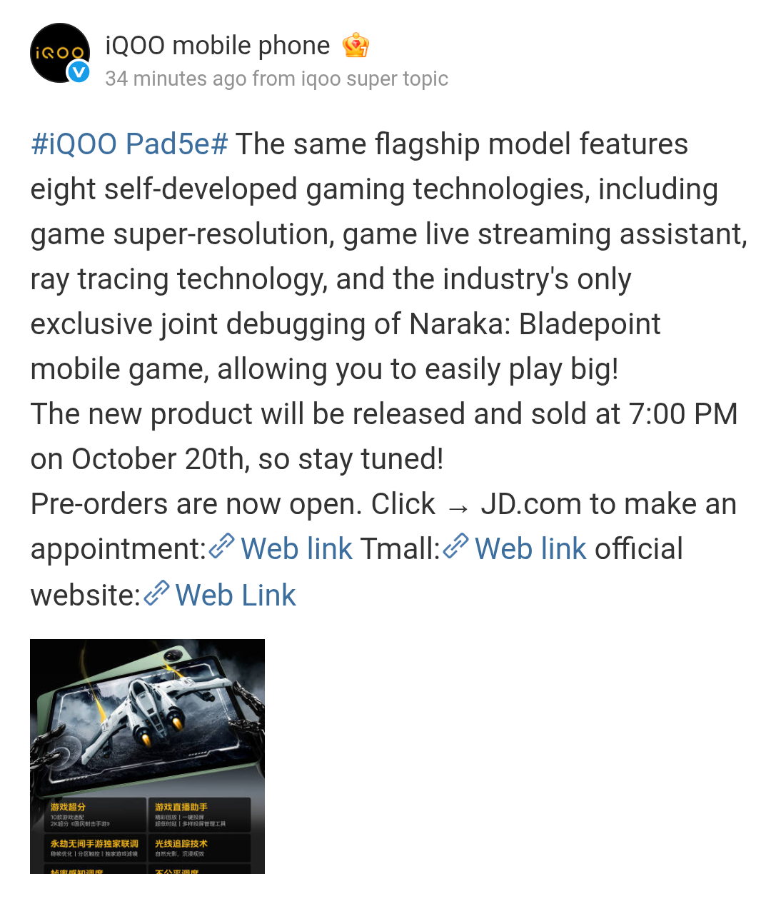 iQOO Pad 5e Teased to Support Eight Self-Developed Gaming Technologies; iQOO 15 Also Revealed to Feature 8K VC Dome Cooling System, Universal E-sports Network System 2.0, and More