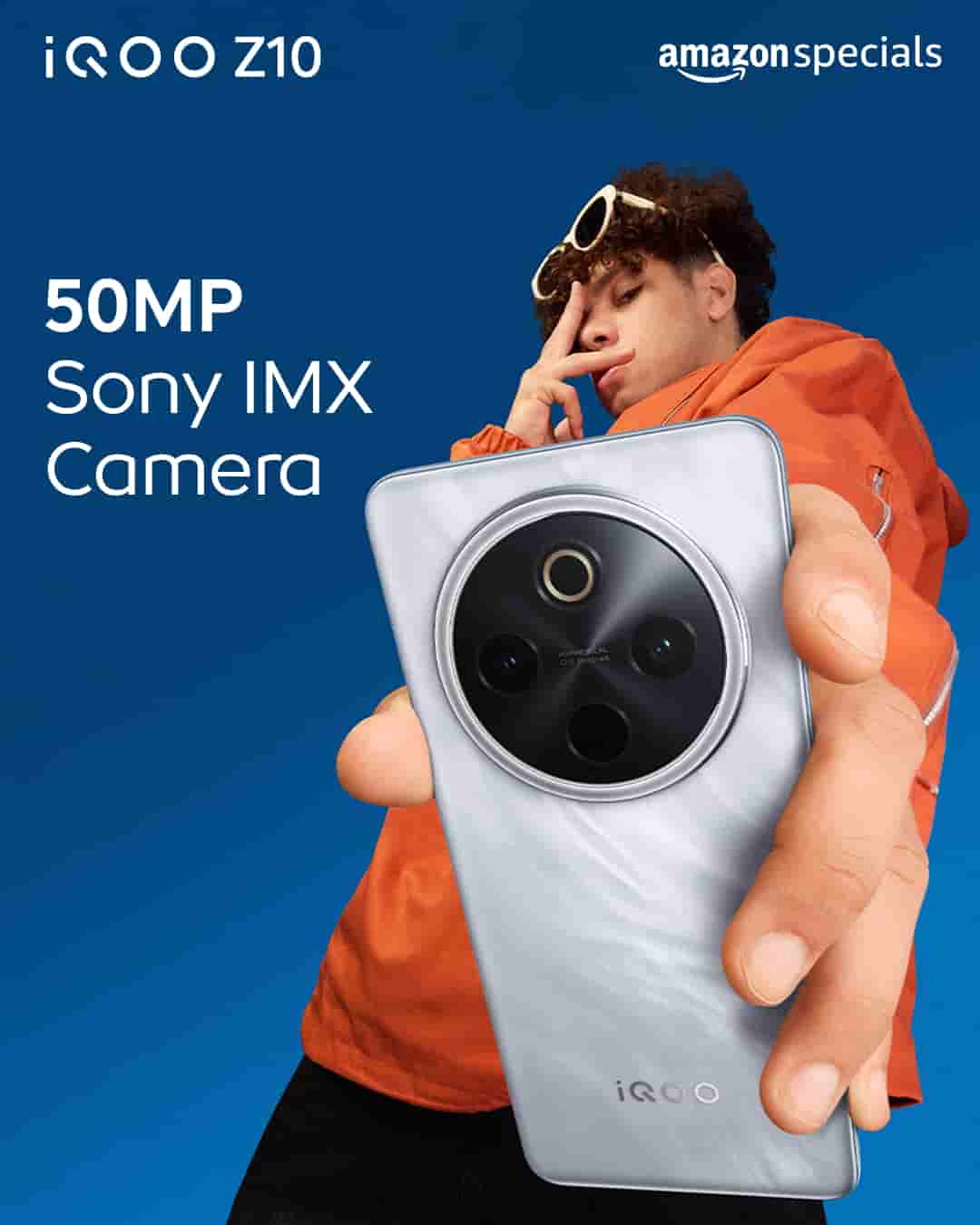 iQOO Z10 will arrive with India’s biggest battery ever- 7300 mAh and support 90W Flash Charge. In full charge, the device will offer 52 hours of calling, 35 hours of binge watching, 15 hours of gaming, and 8.5 hours of video recording. The smartphone is 0.789cm slim. It sports a quad curved AMOLED display that offers 5000 nits peak brightness. The device will be equipped with a 50MP Sony IMX camera and a Snapdragon 7s Gen 3 SoC. It weighs 199g and comes in glacier silver and stellar black color options.