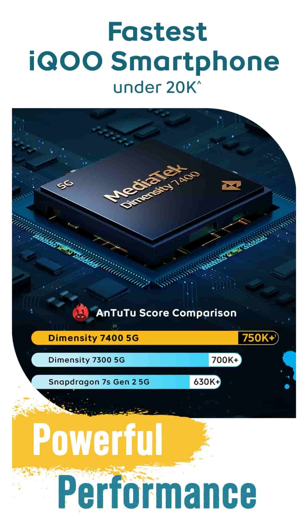 The smartphone is already confirmed to feature a 32MP selfie camera that supports 4K vlogging. The device will also feature a Sony IMX882 4K OIS rear camera. It will be powered by MediaTek Dimensity 7400 SoC, which arrives with a 750K+ AnTuTu score. The device is teased to arrive as the fastest iQOO smartphone under Rs 20K.