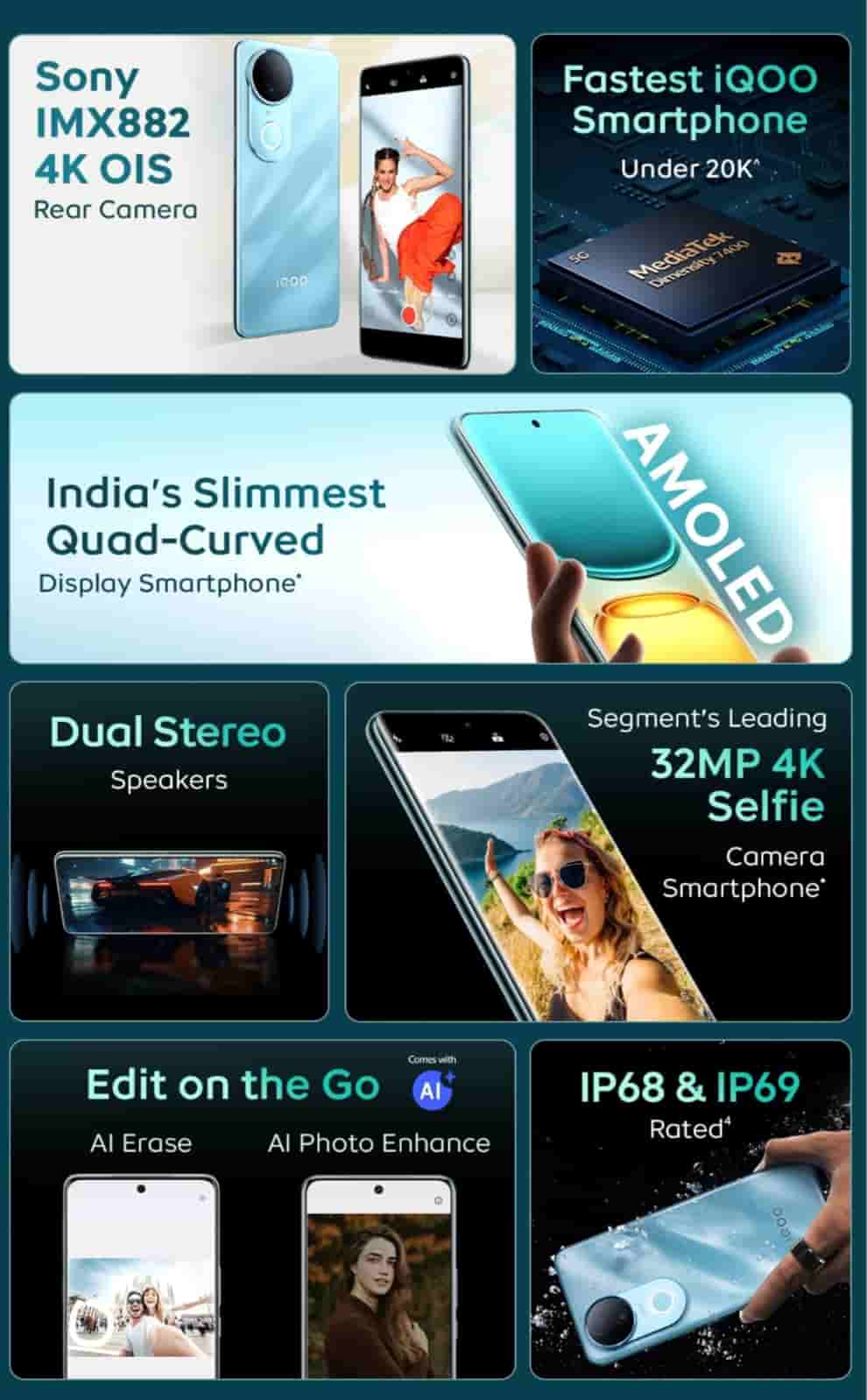 The smartphone comes in Moonstone and Aquamarine color options. There are three storage options- 8/128GB priced at Rs 19,499, 8/256GB priced at Rs 21,49,9, and 12/256GB priced at Rs 23,499. The official sale will start from 29th July at 12 PM via the iQOO India official website and Amazon.