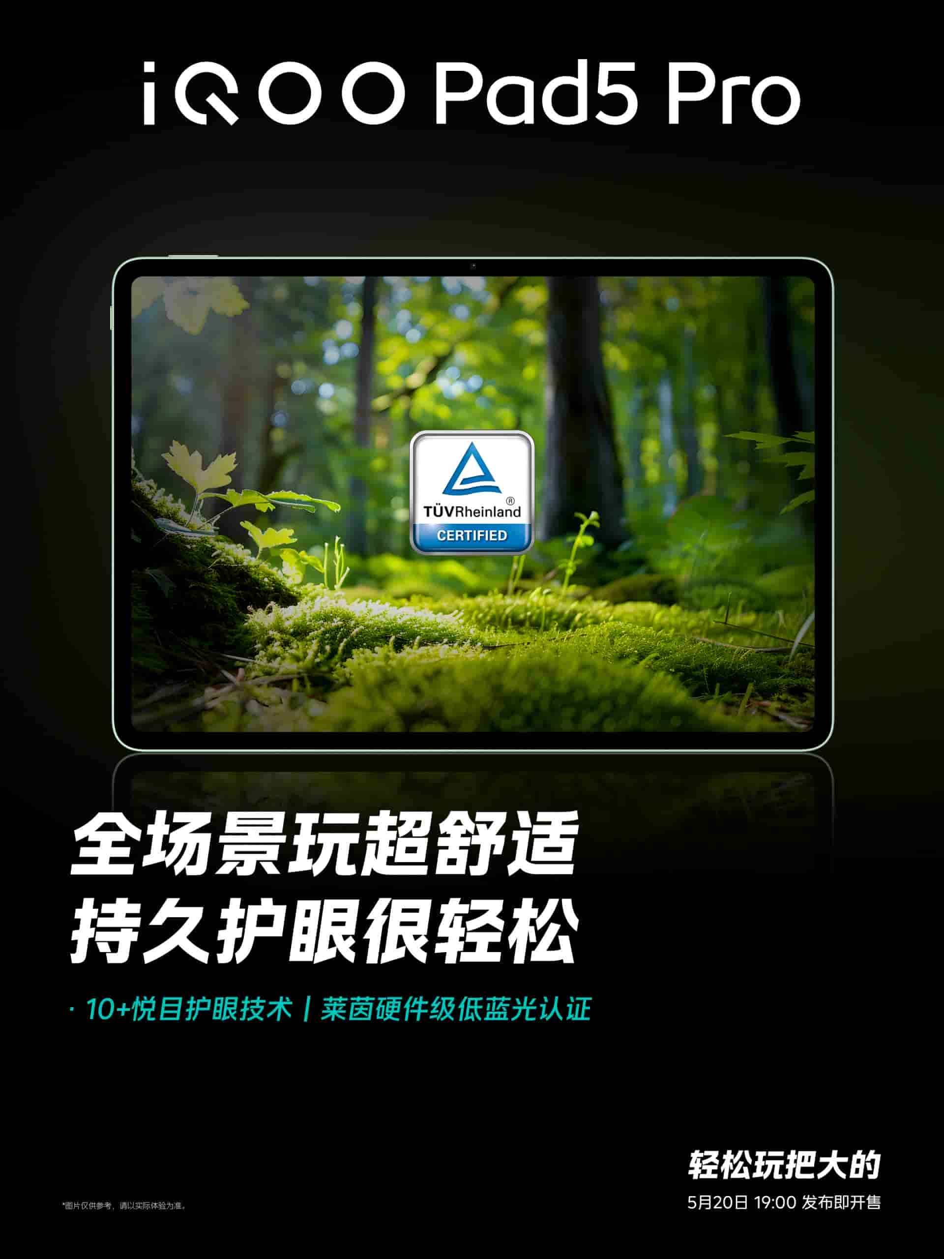Via the new teaser updates, it has been confirmed that the iQOO Pad 5 series will be introducing an iQOO Pad 5 Pro model. This device will feature a PC-level 13″ large display screen with high brightness (1200 nits), clarity, and eye protection. The display will be supporting an industry-developed dual-side light input technology, and has a new ecological-level color management and 10+ pleasing eye protection technology. It has also received the TUV Rheinland low blue light certification too.