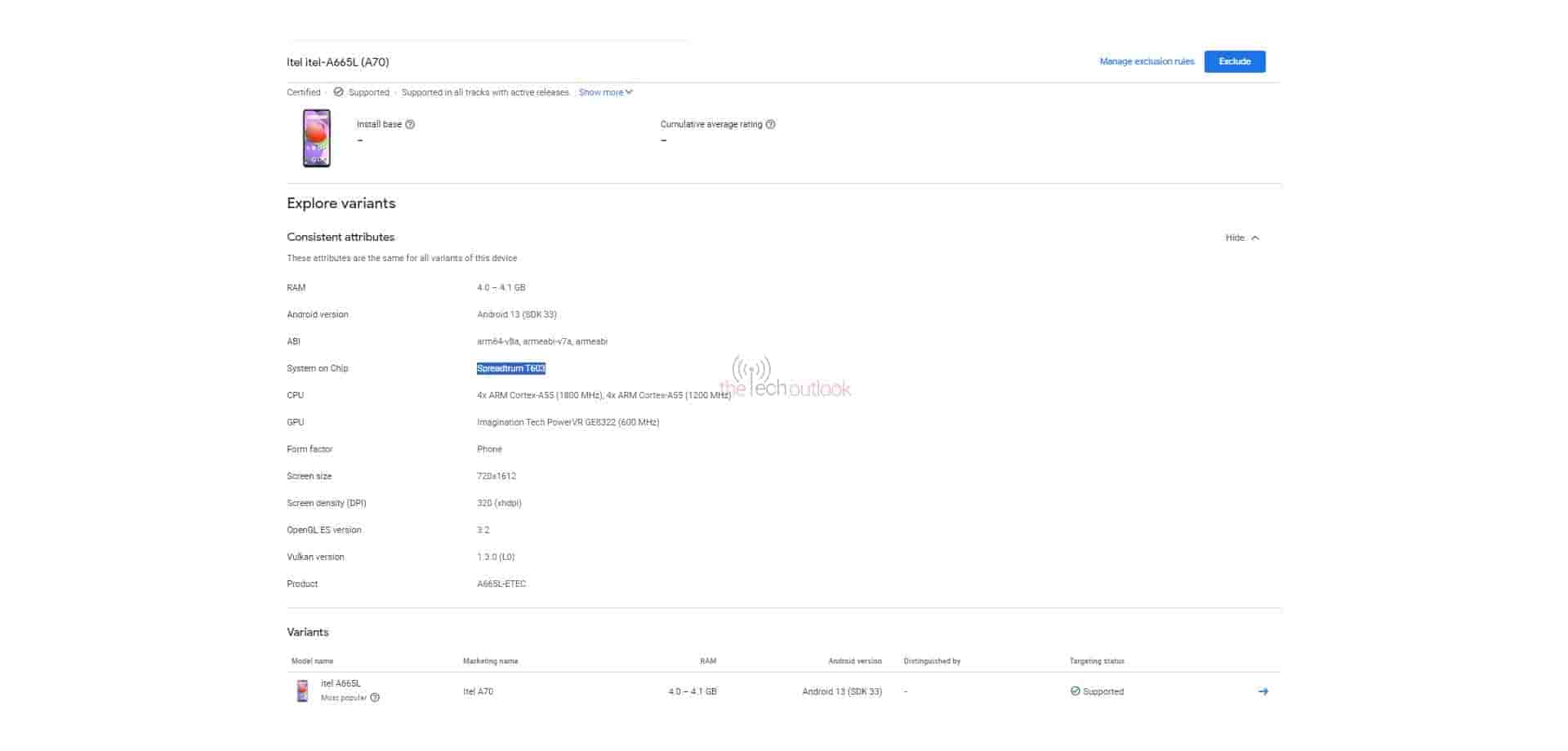 The upcoming Itel A70 smartphone has made its appearance on the Google Play Console database with the model number – A665L, and it is now confirmed that the smartphone will be powered by the Spreadtrum T603 chipset and will come pre-installed with the Android 13 operating system. A RAM variant with 4GB of inbuilt RAM will also be there for the smartphone.