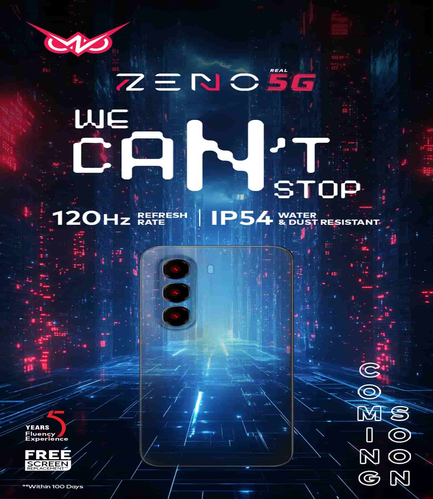The upcoming itel ZENO 5G smartphone has been teased with the tagline – ‘We can’t stop’, and its notable key specs such as the 120Hz refresh rate, IP54-rated water and dust resistance, and 5 years fluency experience have been pointed out. Also, a free screen replacement policy (for the first 100 days) has also been announced for this smartphone.