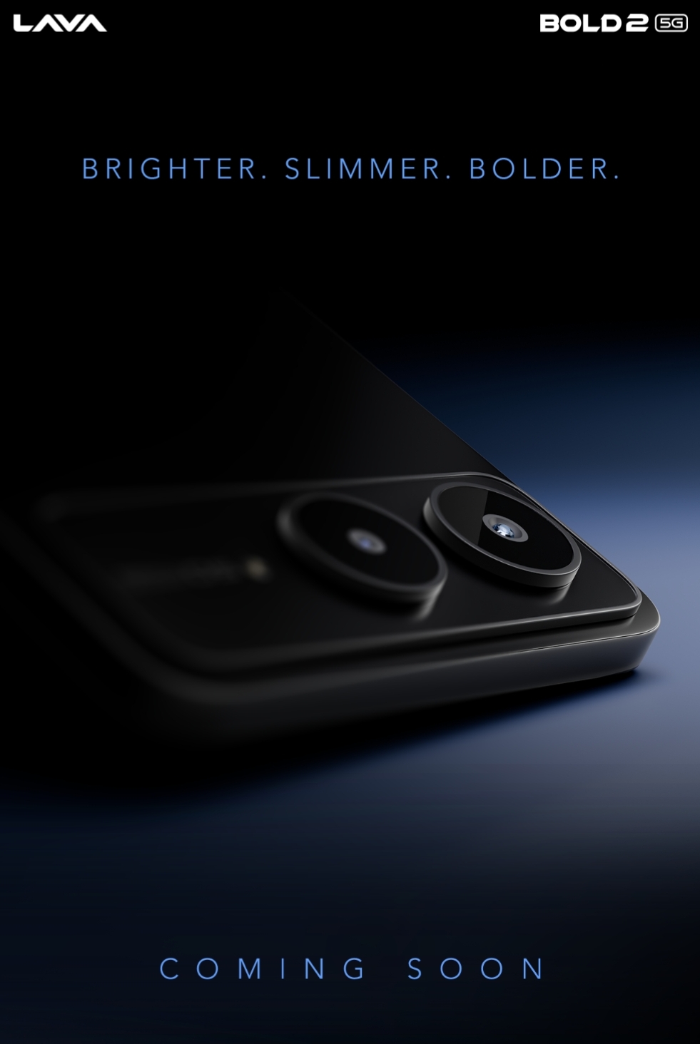 The microsite partially teases the design of this device. The rear panel features a rectangular camera module that houses dual camera sensors. The device is seen in a Black colour option. The volume and power buttons are present on the right side of the smartphone. The Lava Bold 2 5G is teased to be brighter, slimmer and bolder.