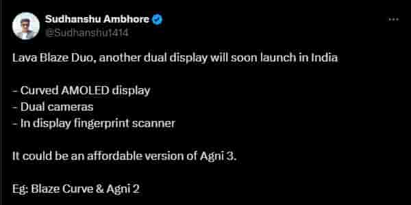 Lava, having recently launched the dual-display Agni 3 in India, is now preparing to introduce another dual-display (secondary rear display) smartphone called the Lava Blaze Duo.