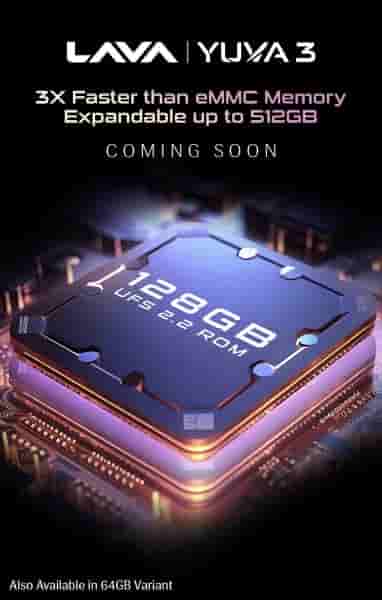 As per the teaser on Amazon.in the Lava Yuva 3 is “coming soon” though the launch date has not been mentioned on it. The smartphone is mentioned to come in two storage variants 64GB and 128GB that is expandable up to 512GB.