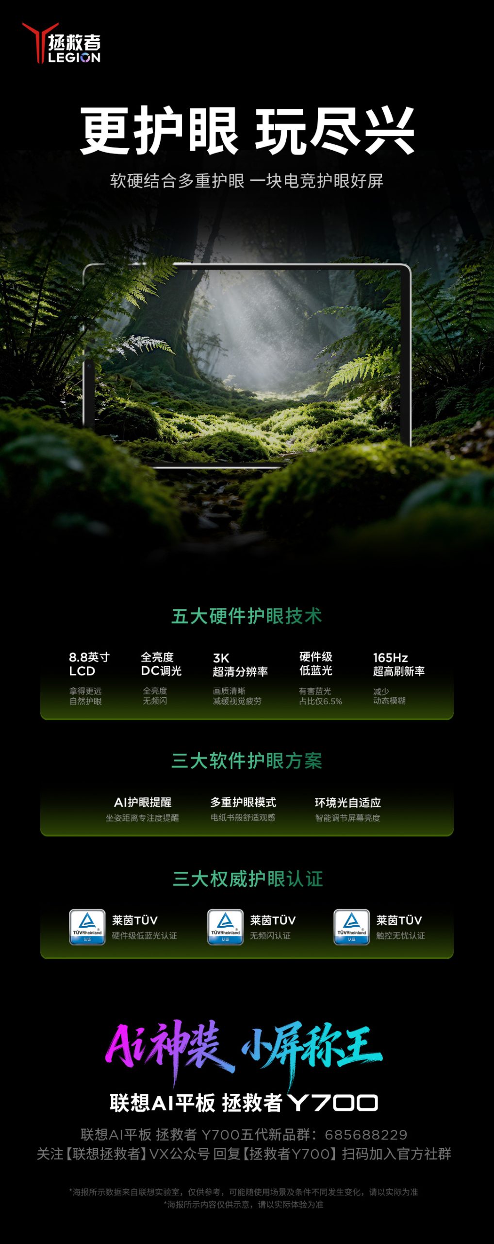 Lenovo AI Tablet Legion Y700 5th Generation features multiple eye protection modes, Super Internet 3.0 and AI Network Acceleration