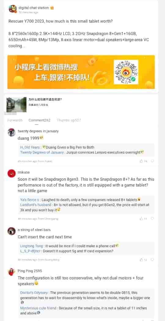 Though this tablet could have incorporated the latest Snapdragon 8+ Gen 2 processor if it has compromised in the processor it seems to have worked on cooling with large area VC. Further tipsters revealed that this tablet will pack 16GB RAM and will be backed by a 6,550 mAh battery that supports 45W charging. As far as the camera is concerned this tablet can come with a 13 MP rear camera and 8 MP front camera. For a better gaming experience, it can come with X-axis linear motor and dual speakers. These features can vary from the real ones which will be confirmed in the upcoming days.