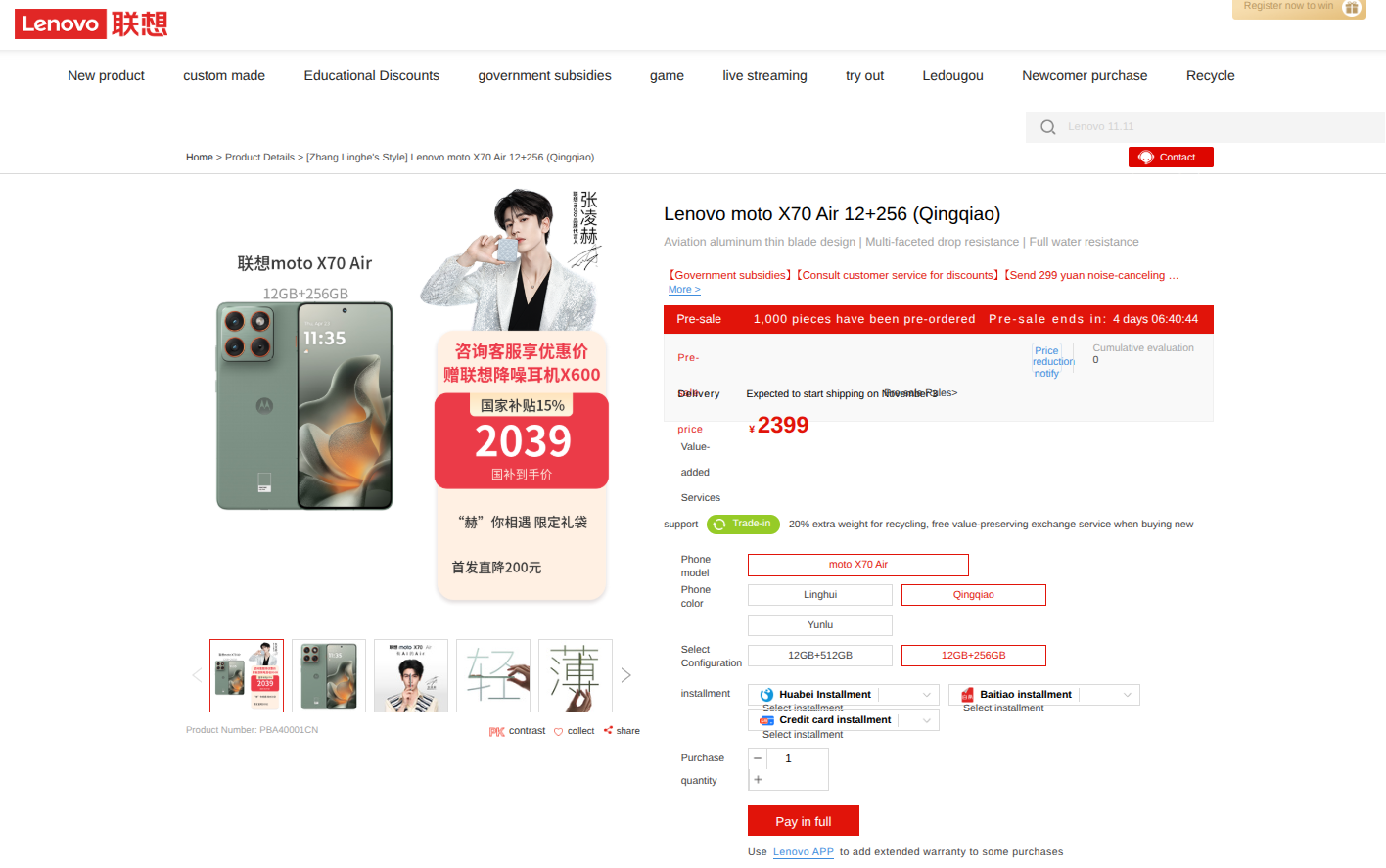 Lenovo Moto X70 Air Smartphone Product Page Reveals its Chinese Pricing Details: Pre-Sale Now Live