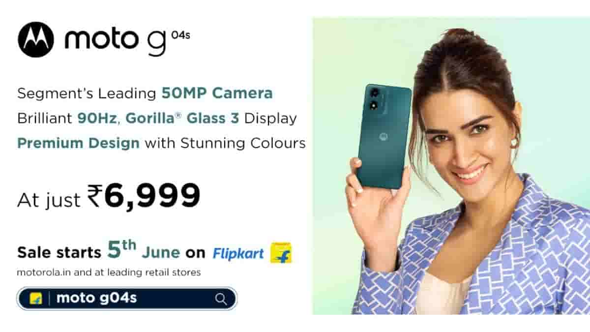 The Real Upgrade is HERE! Our most demanded smartphone moto g04 gets a massive upgrade with all new #MotoG04s redefining value with advance 50MP camera & segment’s only Gorilla® Glass 3 at ₹6,999, sale starts 5 Jun @flipkart, https://t.co/azcEfy1Wlo & at leading retail stores. pic.twitter.com/GAgvRpT4VS