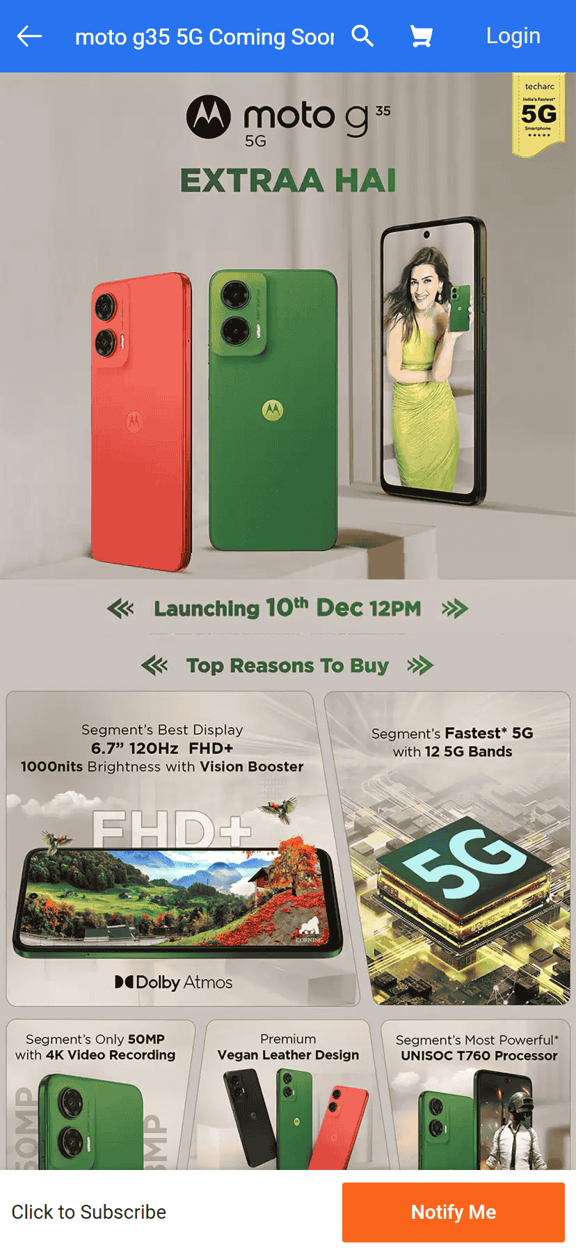 Motorola is gearing up to launch its budget-friendly Moto G35 5G smartphone in India with a tagline “Extra Hai”, following its global debut alongside the Moto G55 5G. It will officially launch on 10th December in India via Flipkart and the Motorola India website. According to the Flipkart microsite, the Indian variant shares identical specifications with the global version. However, pricing and storage configurations will be unveiled during the launch.