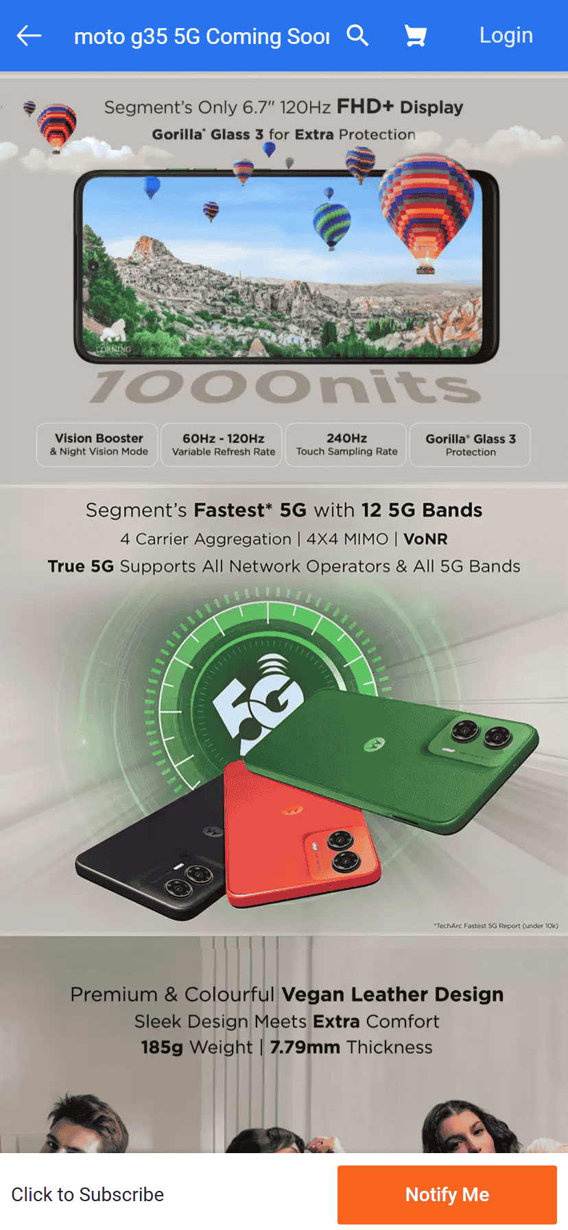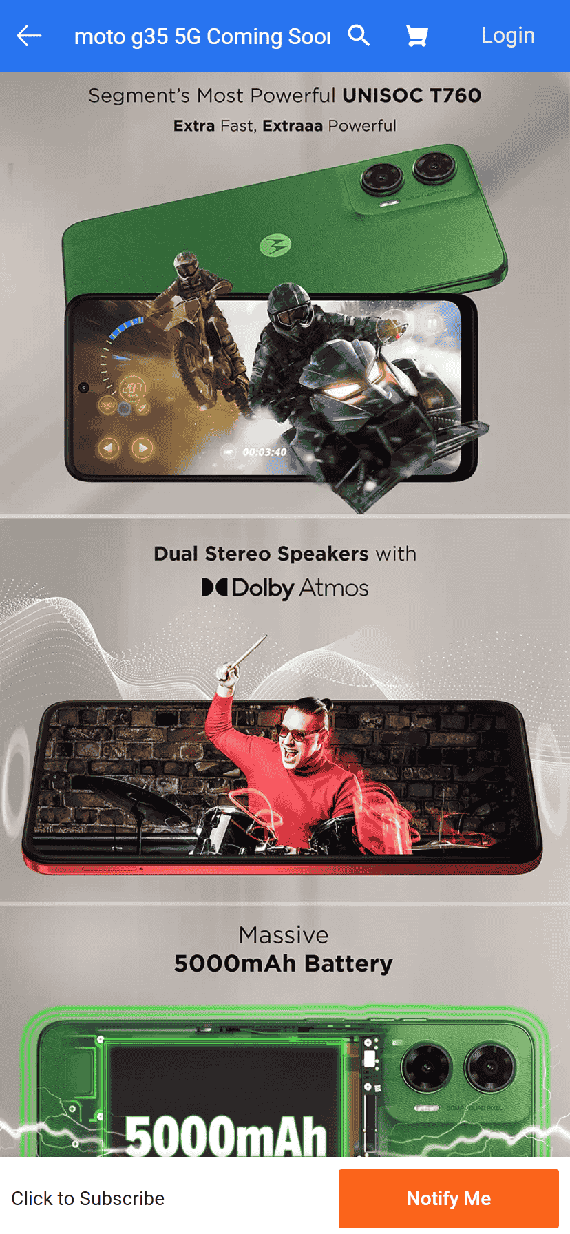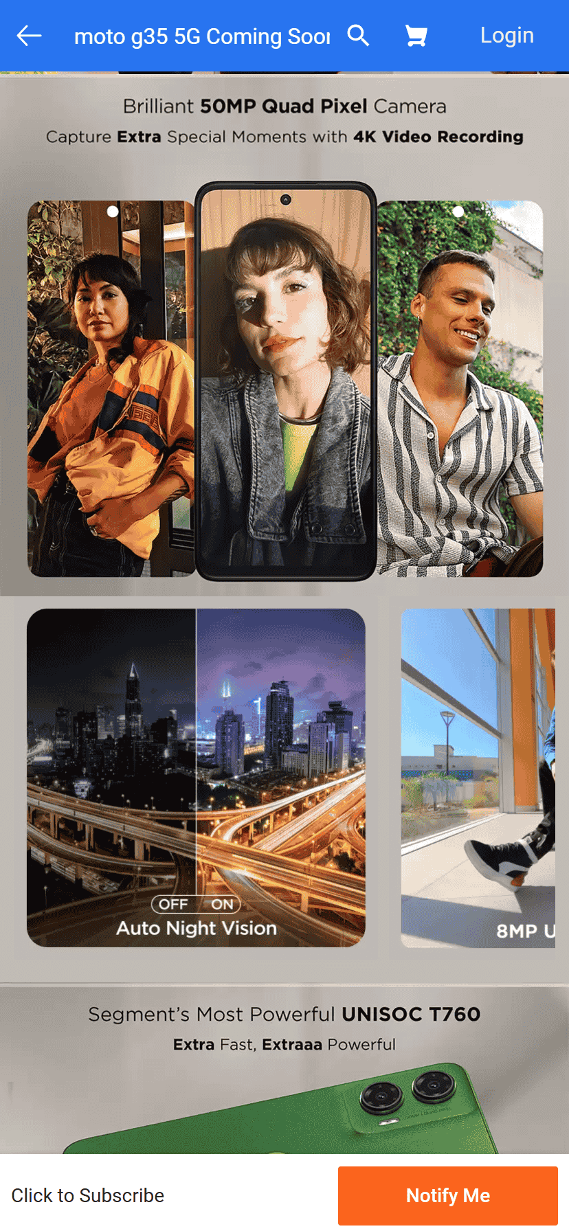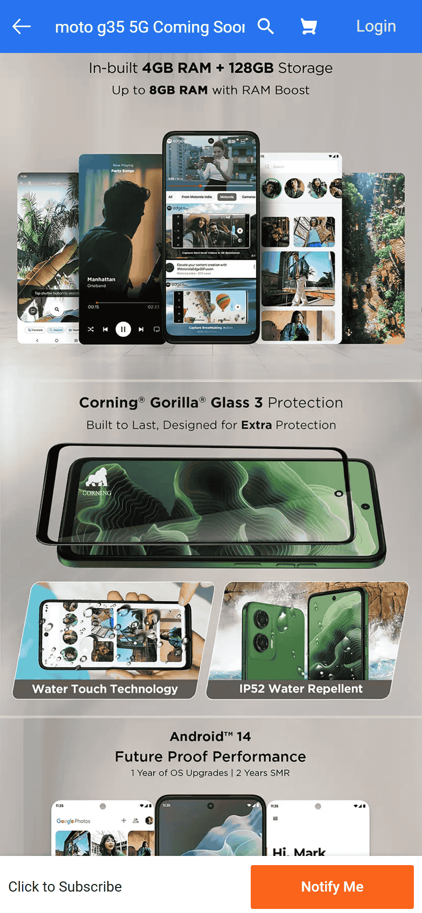 Under the hood, you’ll find the Unisoc T760 SOC, which Motorola claims is the segment’s fastest processor. It comes with 4GB RAM that can be expanded up to 8GB using RAM Boost technology, along with 128GB storage. The phone will run Android 14 out of the box and is promised one major OS upgrade plus two years of security patch updates.