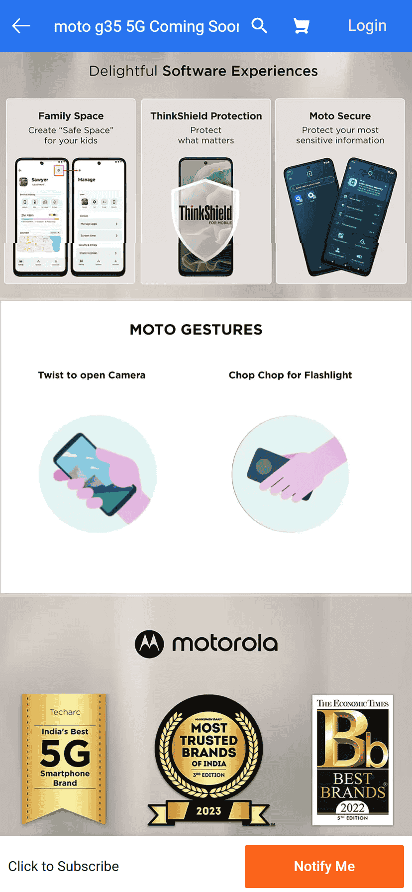 In terms of connectivity, the device supports 12 5G bands with 4X4 MIMO (Multiple Input Multiple Output) and VoNR capabilities. It features 4X Carrier Aggregation and works seamlessly with all Indian network operators as per motorola’s promo page.