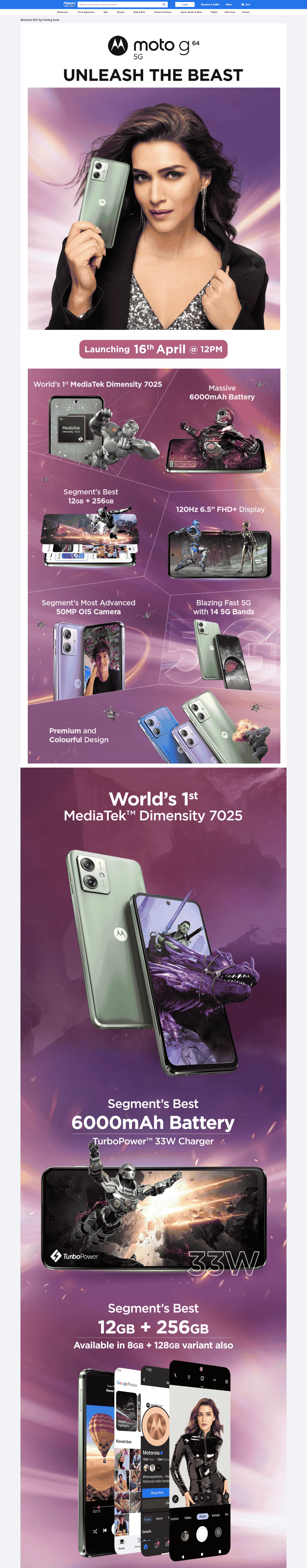 Moto G64 5G launching with MediaTek Dimensity 7025, 6,000 mAh battery on 16th April in India via Flipkart