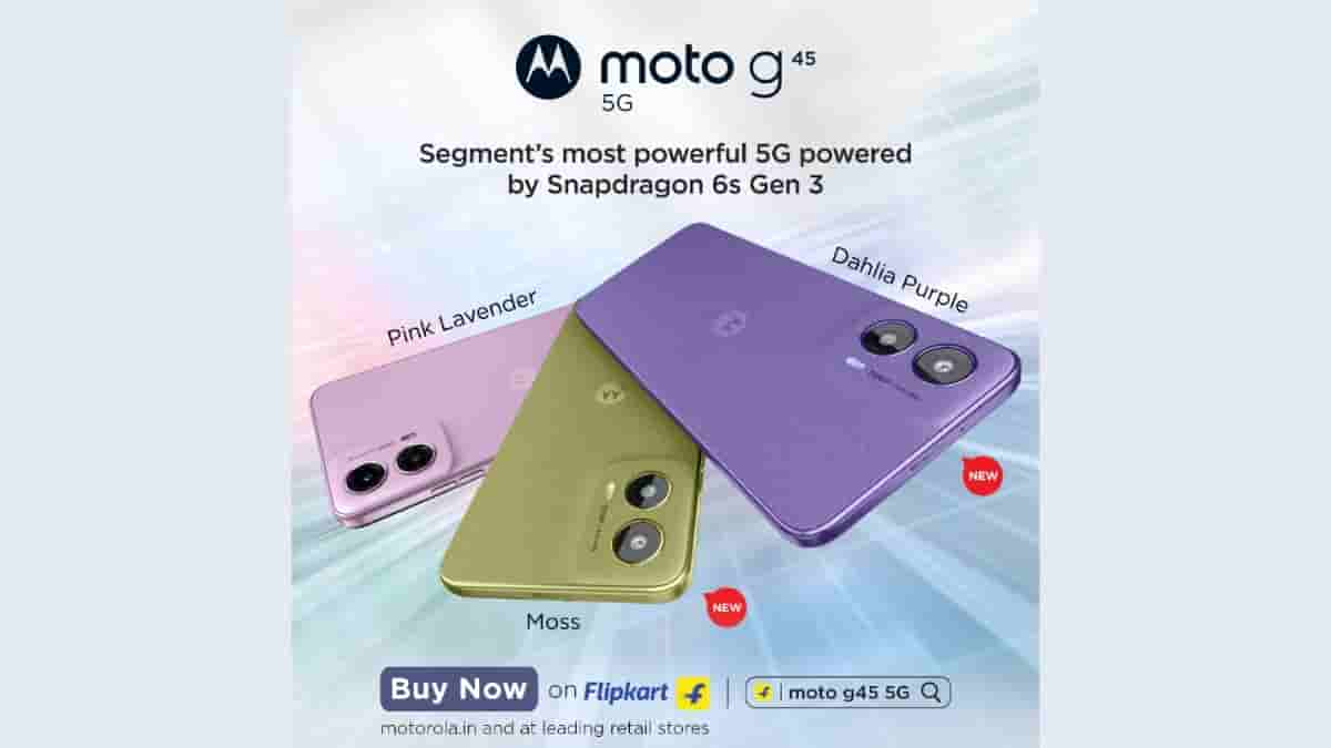Motorola is adding two new colour options to the already available Moto G45 5G smartphone in the Indian market. At the time of its launch in India, the Moto G45 was available in Brilliant Blue, Viva Magenta, and Brilliant Green. Later, a fourth colour option, Pink Lavender, was released (in Jan 2025). Now, Motorola has added two more shades: Dahlia Purple and Moss.