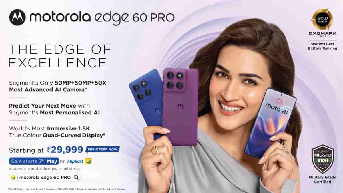 Motorola Edge 60 Pro Smartphone Launches in India at INR 29,999 Starting Price: Pre-Booking Now Live