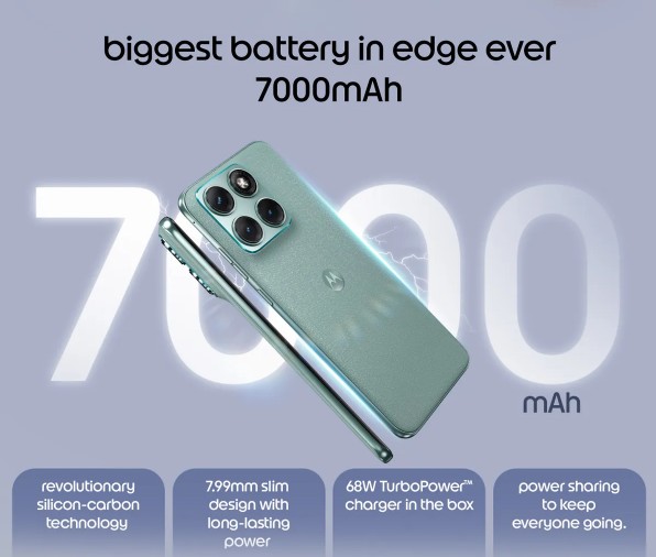 Lastly, even though it is 7.99mm slim, it still packs a 7000mAh battery made from silicon-carbon technology, which is the biggest battery ever given in an Edge series smartphone. Plus, it will come with a 68W TurboPower charger in the box.
