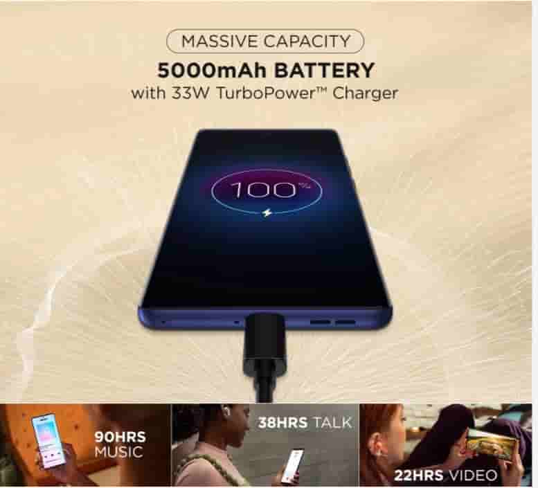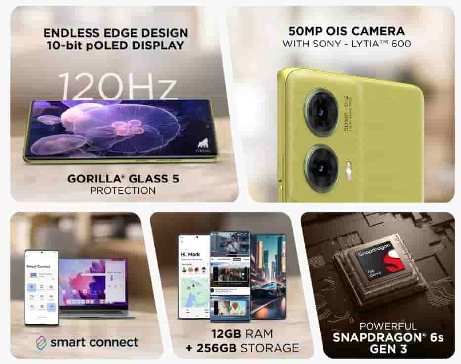 The Moto G85 5G smartphone is confirmed to feature a 6.7-inch wide pOLED 120Hz curved 10-bit display with 1600 nits of peak brightness, Gorilla Glass 5 protection, and SGS eye protection. It is powered by the Snapdragon 6s Gen 3 processor paired with 12GB RAM and 256GB storage. In the camera department, the smartphone gets a 50MP main camera with OIS support and an 8MP macro camera. The front side has a 32MP selfie camera. It is powered by a 5,000mAh battery that supports 33W fast charging. Additionally, it comes with the in-display fingerprint sensor, Moto Secure, and Dolby Atmos tuned speakers. It will run Android 14 out of the box and will get OS updates for 2 years and a security patch for three years.