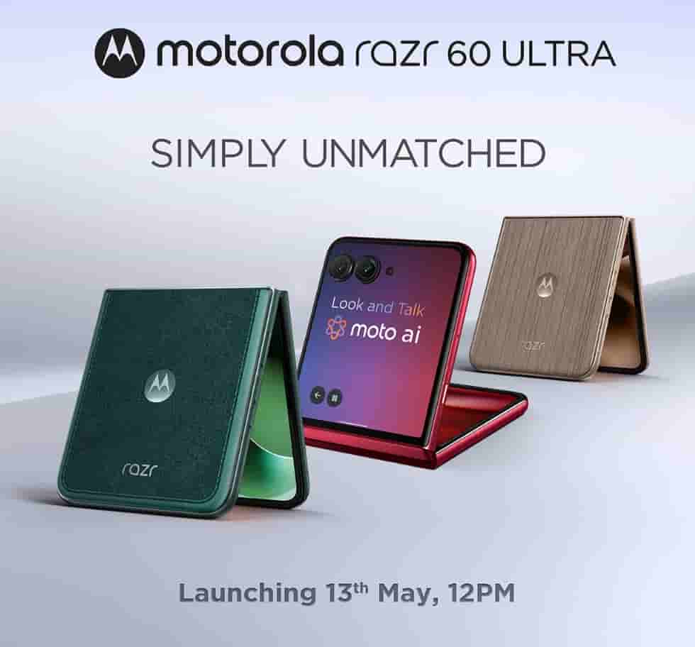 Motorola Razr 60 Ultra has finally got a launch date for India. The device will be making its debut in the country on 13th May 2025 at 12 PM.