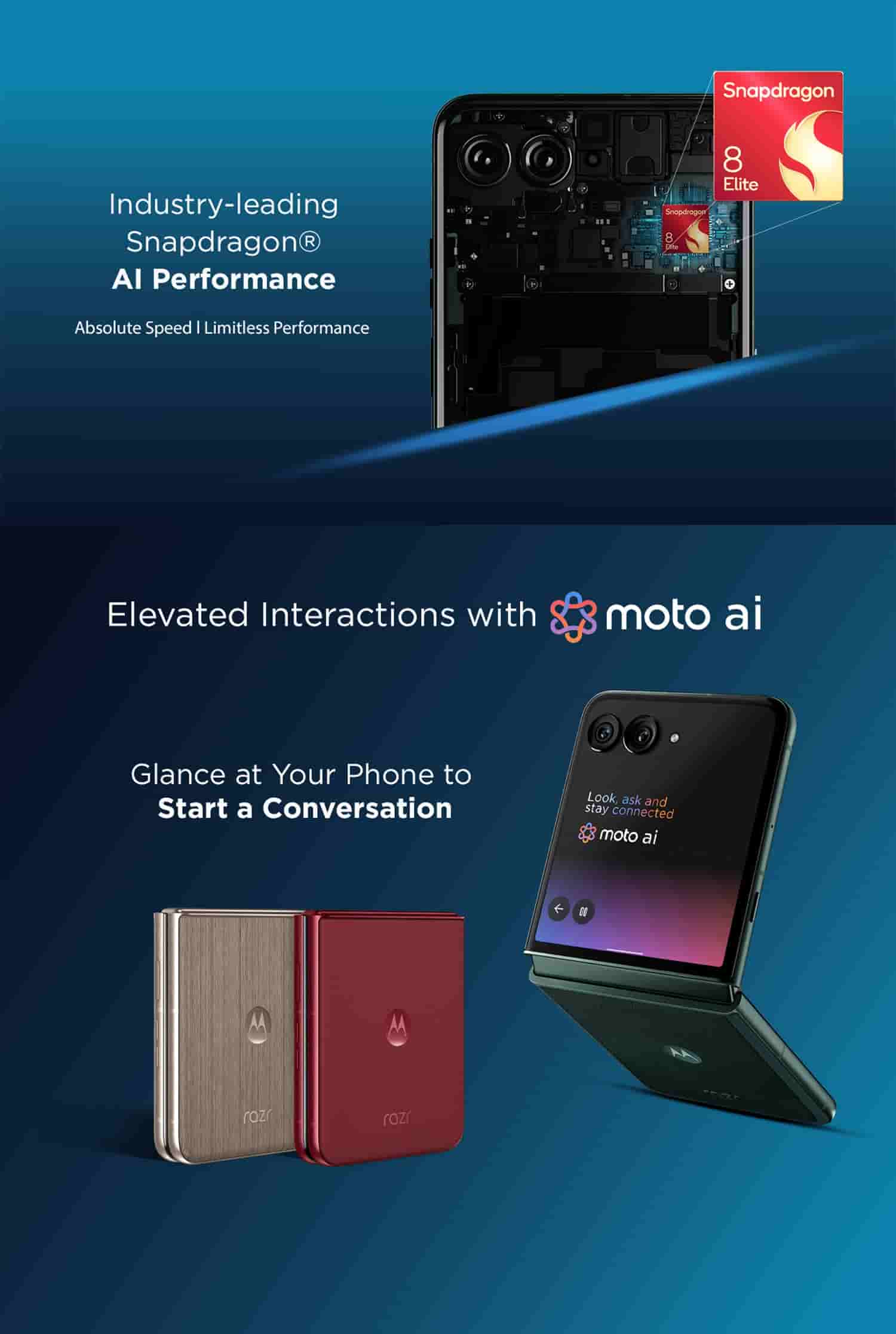 Although it reveals some specifications, the launch date is not mentioned. However, we can expect it to launch sometime this month, as the entire month of May still lies ahead. The Amazon microsite teases it as the “world’s most powerful AI flip phone” powered by Snapdragon 8 elite. It also confirms the presence of Moto AI. Additionally, the site shows three colour options for India — PANTONE Mountain Trail, PANTONE Rio Red, and PANTONE Scarab, unlike the global model, which comes in four colours.