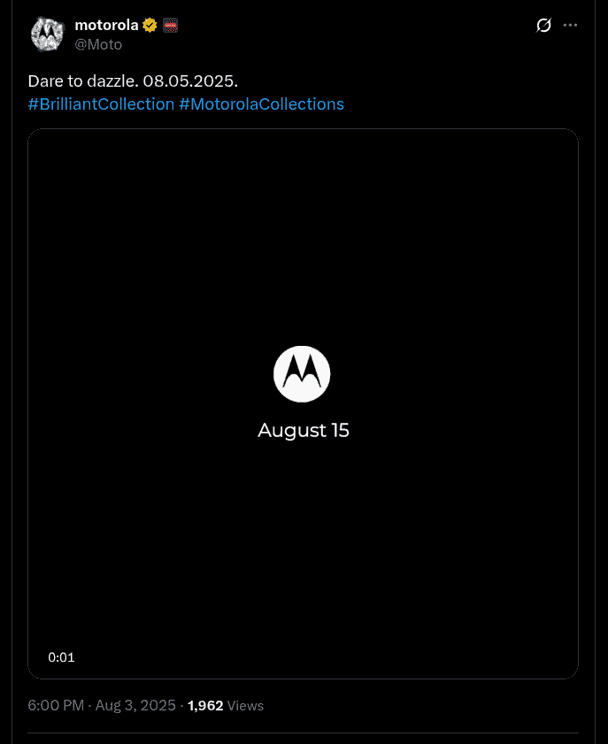 However, while looking at the X post, the previous launch date (~ 08.05.2025) has again been mentioned, which has led to a confusion. Just to add, the brand has used the tagline ‘Dare to Dazzle’ to tease these upcoming smartphone and earbuds models, and the previous hashtags – #BrilliantCollection and #MotorolaCollections are used as well.