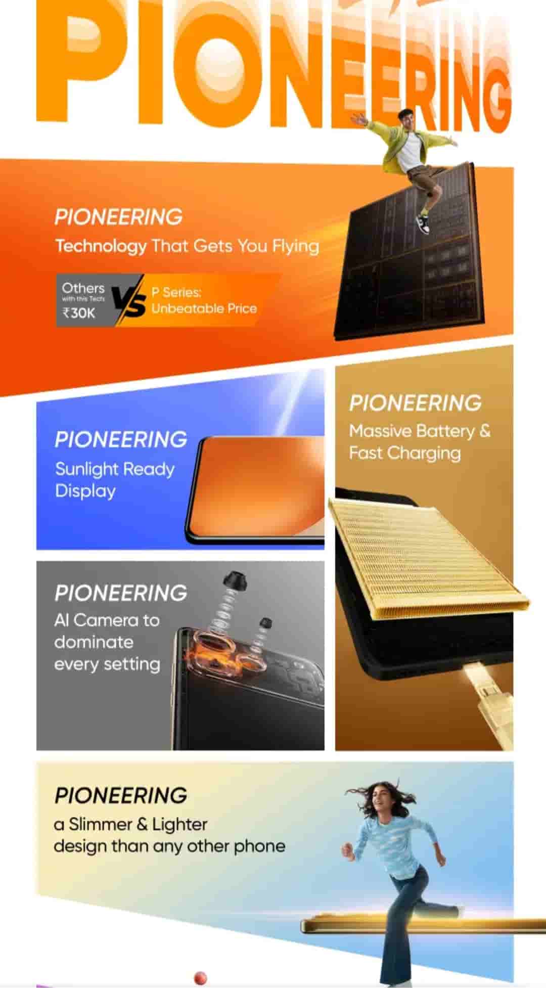 It is revealed that the Realme P series will be coming soon. The series arrives with the tagline ‘The Choice of Youth.’ The series is teased to arrive with Pioneering technology, sunlight-ready display, massive battery, fast charging, AI camera, slimmer & lighter body.