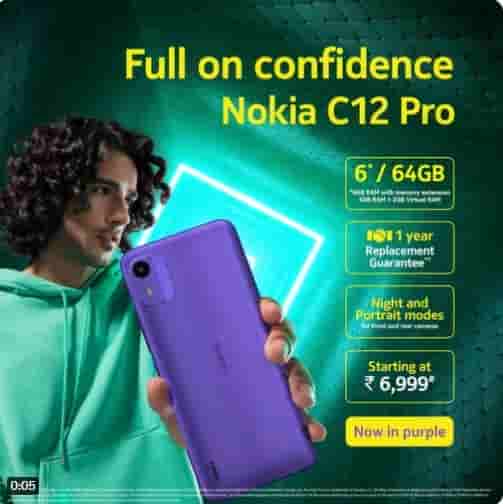 The Purple variant of the Nokia C12 Pro will be available for a price of Rs 6,999.