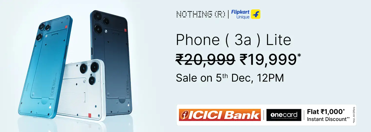 As mentioned, Nothing has officially introduced its Phone (3a) Lite smartphone today for Indian customers and in addition to the Black and White color variants that were previously unveiled in the global market, the latest device is also being offered in a new Blue color choice too in the Indian market. [Just to add, this same color variant was previously offered for the Nothing Phone (3a) model]. About the availability, Indian customers will be able to purchase the device starting from the 5th of December 2025 at 12 PM onward via the Flipkart shopping platform.
