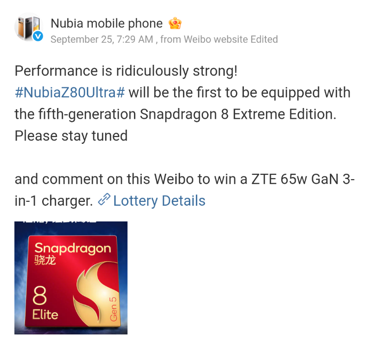 The Nubia Z80 Ultra as always will most likely be a performance-oriented camera flagship and it has been teased with the tagline – ‘A super powerful flagship’. Also, thanks to the Snapdragon 8 Elite Gen 5 chipset that will be used within the upcoming flagship, it will be capable of delivering a ‘ridiculously strong performance’. As mentioned, its launch in China is set to take place next month in October 2025.