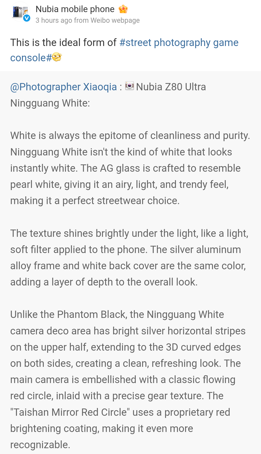 Apart from the Phantom Black and Condensed Light White color variants, as mentioned, this time too the Nubia Z80 Ultra will be offered in a Starry Sky option with elements from the painting on the rear panel, side panels, as well as within the camera module.