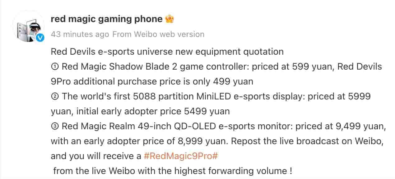 The Red Magic Realm 49″ QD-OLED e-sports monitor has a list price of ¥9499 and an early adopter price of ¥8999. It will be put on sale next month in December 2023.