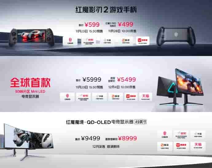 The Red Magic 5088 partition MiniLED e-sports monitor has an actual price of ¥5999, and on the 4th of December 2023, the day of its official sale, it will be available for an early adopter price of ¥5499.