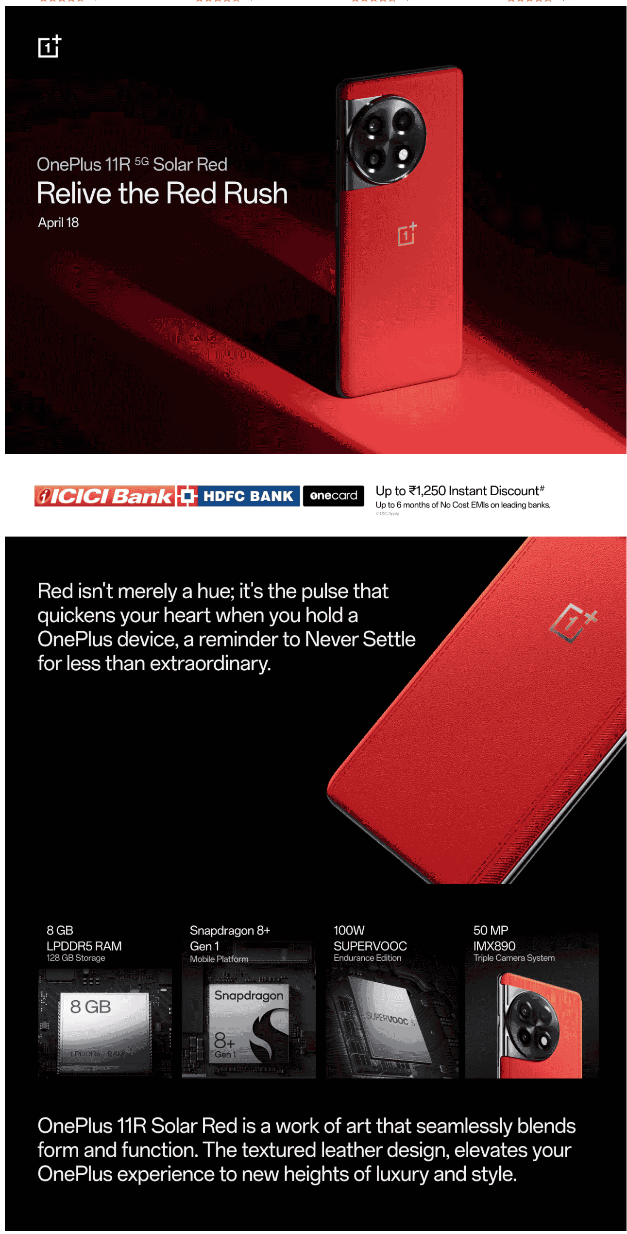 Well, the company will now be introducing a second storage configuration for the OnePlus 11R 5G Solar Red color variant- 8GB/128GB.