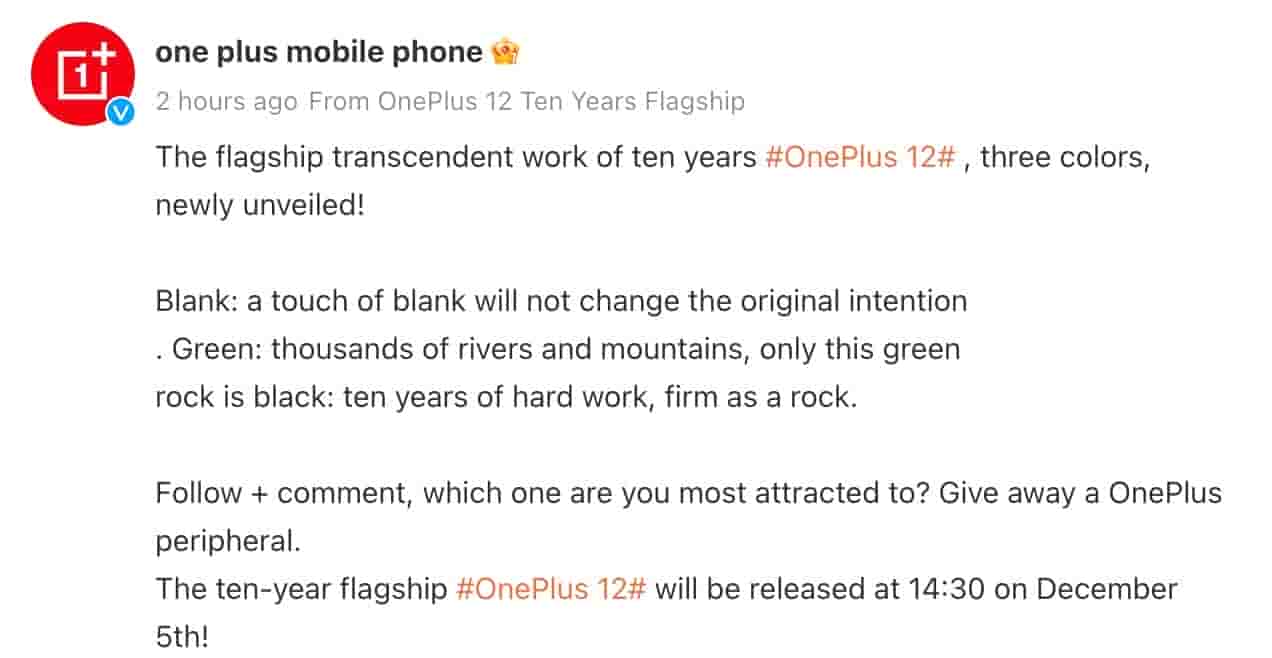 The much-awaited flagship OnePlus 12 device was said to have its debut on the 4th of December 2023, next month, on the day of the brand’s 10th anniversary event. The launch date has now been changed and is rescheduled to take place on the 5th of December, a day later than the previous said launch date, at 2:30 PM local time. On the 4th, the brand will only be having the anniversary fireside chat session with OnePlus Co-Founder and CEO – Pete Lau.