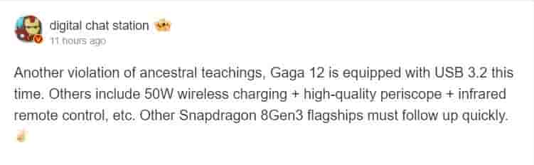 Just recently Digital Chat Station has revealed some other key specs of the handset that the OnePlus 12 can come with. As per the DCS OnePlus 12 can come with a USB 3.2 port and can support 50W wireless charging. Its predecessor, the OnePlus 11 lacks wireless charging and comes with USB 2.0 port thus giving OnePlus 12 an advantage over it. Furthermore, the tipster revealed that it can come with an Infrared sensor and a periscope camera.